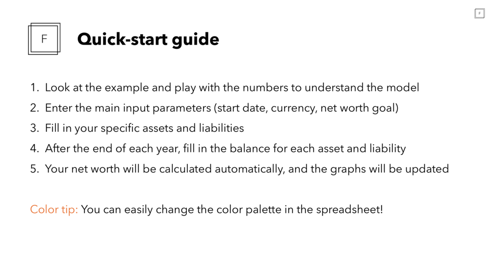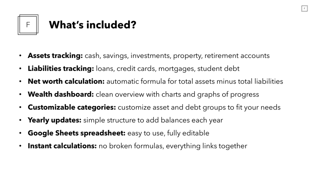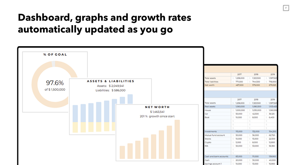This net worth calculator is a one-tab Google Sheets spreadsheet. Watch your wealth grow over time!