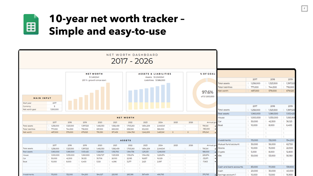 10-Year Net Worth Tracker: Google Sheets Personal Finance Spreadsheet