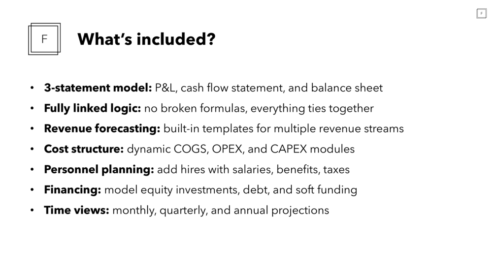 - Fully linked logic: no broken formulas, everything ties together